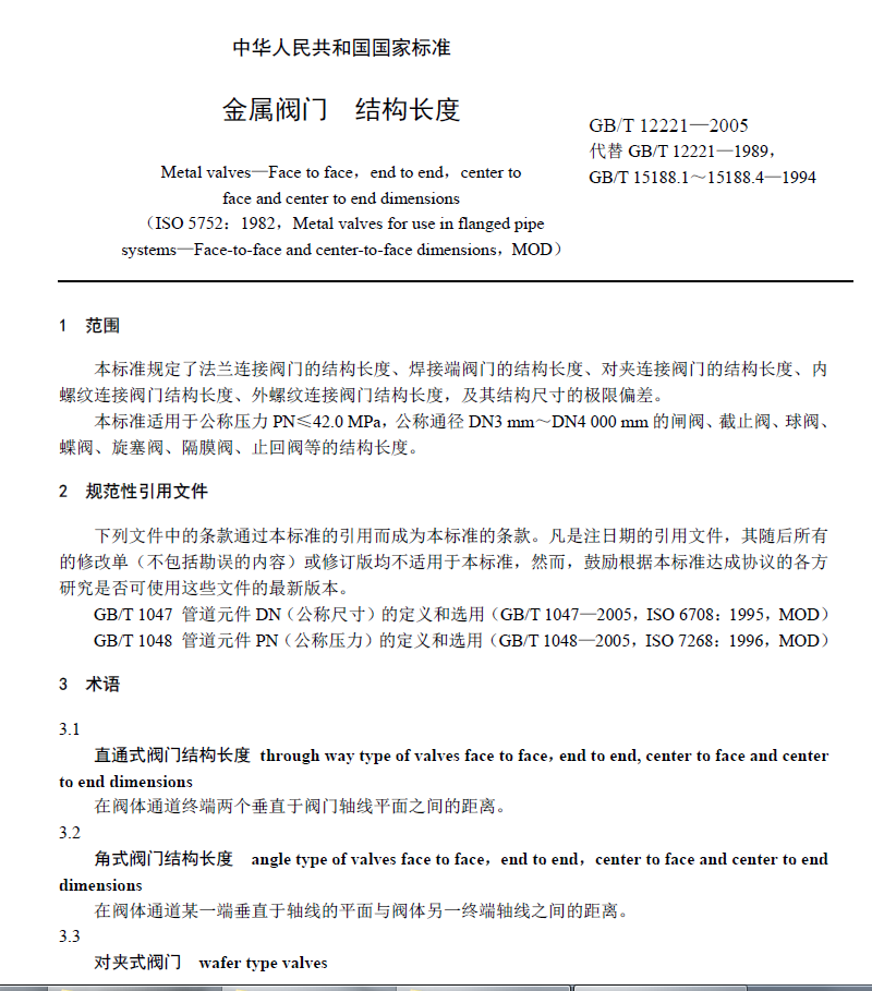 GB/T12221-2005閥門的結構長度 PDF下載